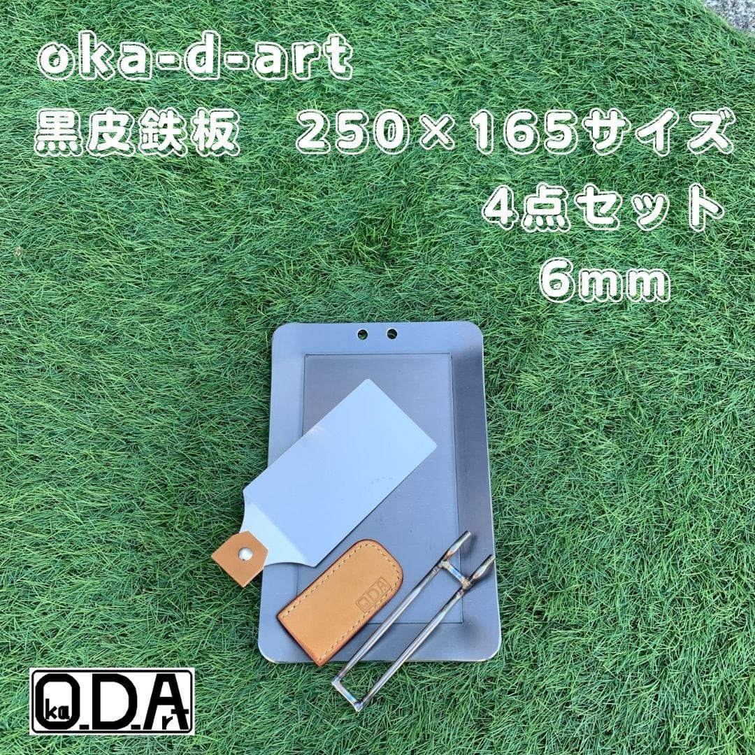 oka-d-art 86 黒皮鉄板 鉄板 極厚 ソロキャンプ鉄板 アウトドア鉄板 ソロ鉄板 BBQ鉄板 グリル 4点セット品 極厚t6mm×250mm×165mm 送料無料