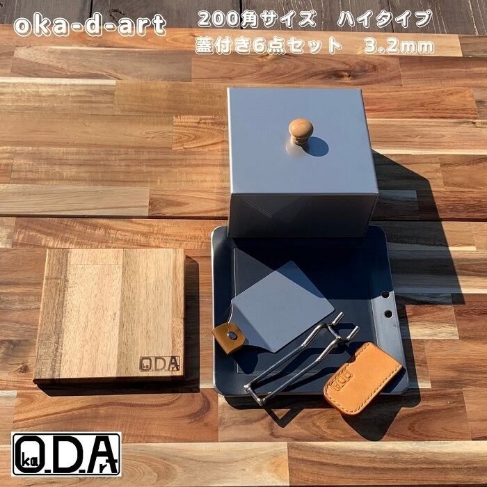 oka-d-art 204 黒皮鉄板 鉄板 蓋 ソロキャンプ鉄板 アウトドア鉄板 ソロ鉄板 BBQ鉄板 グリル ハイタイプ + 200角用 合計6点セット品 厚さt3.2mm 蒸し料理 などに 蓋はステンレス仕様 送料無料