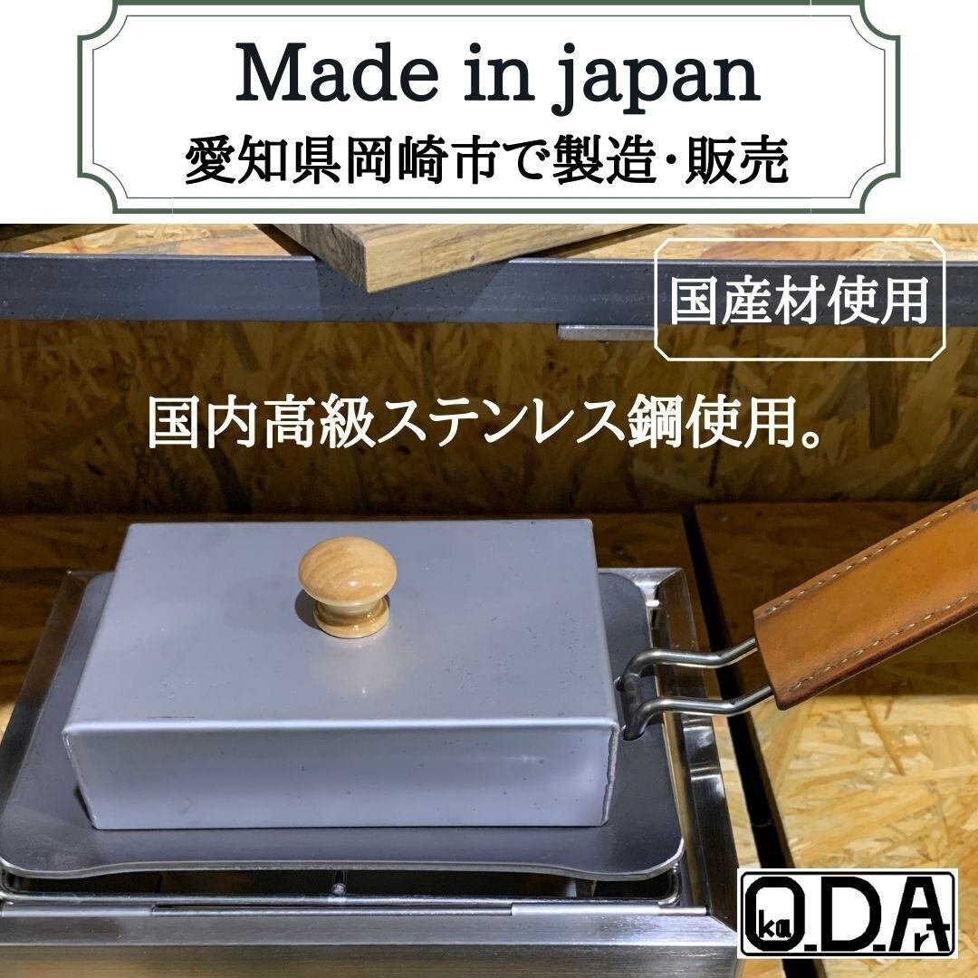 oka-d-art KA14-2SL 黒皮鉄板 鉄板 本革鉄板ケース ソロキャンプ鉄板 アウトドア鉄板 ソロ鉄板 BBQ鉄板 グリル ヌメ革製 キャメル8点セット品 250角・蓋高さノーマルタイプ40mm用 厚さ3.2mm×250mm×250mm 送料無料