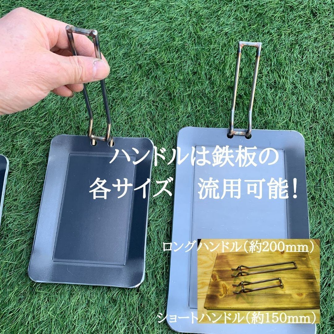 黒皮鉄板の1辺に2ケ、穴が明いています。ステンレス製のハンドルを挿して御使用ください。ハンドルにはショートタイプとロングハンドルが有ります。