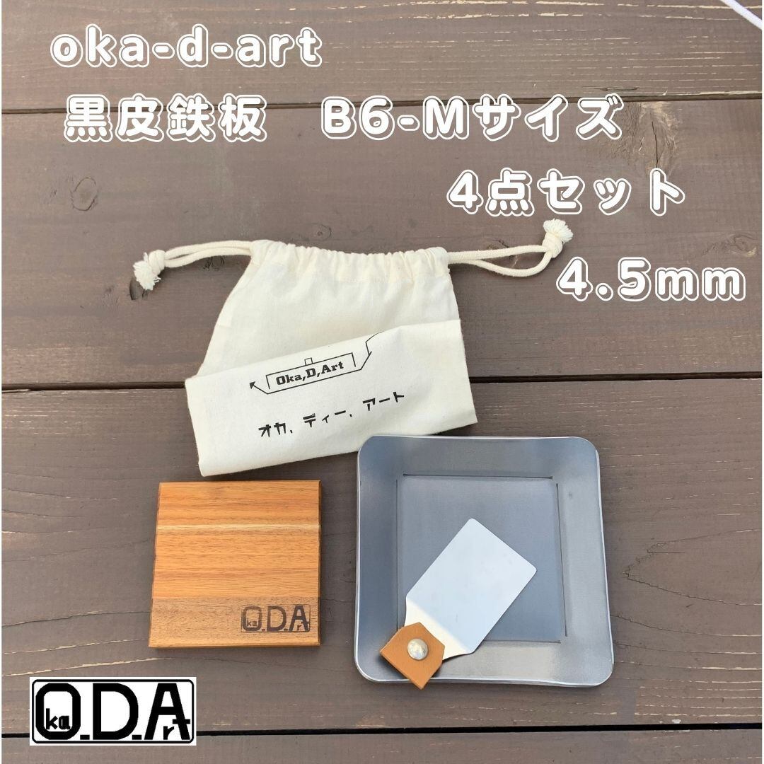oka-d-art 360 黒皮鉄板 アウトドア鉄板 ソロ鉄板 BBQ鉄板 B6-Mサイズ コットン袋付4点セット 穴なしタイプ 厚さ4.5mm 送料込み